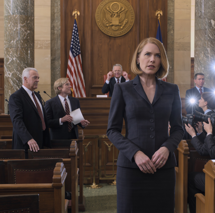 Odwróciłem wzrok, skupiając się na pieczęci Stanów Zjednoczonych wiszącej za pustym stanowiskiem sędziowskim.