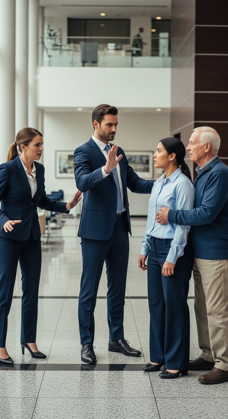 Byłem tylko nieśmiałym stażystą robiącym kopie i przynoszącym kawę, kiedy go zobaczyłem: starszego mężczyznę stojącego samotnie w zatłoczonym holu naszej firmy, wyraźnie sfrustrowanego, gdy kolejne osoby przechodziły obok niego, nie patrząc na niego. Kiedy zorientowałem się, że jest głuchy i próbuje się porozumieć, podszedłem do niego i pomachałem prostym gestem: „Dzień dobry, w czym mogę pomóc?”. Nie miałem pojęcia, że prezes firmy obserwuje nas z antresoli.