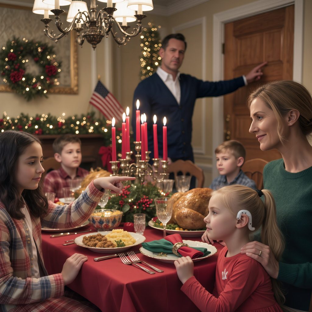 Podczas rodzinnego obiadu moja siostra naśmiewała się z aparatu słuchowego mojej córki. Tata powiedział: „To tylko żart – wyluzuj”. Milczałam. Ale mój mąż wstał. Bez słowa odprowadził ich do drzwi. Kiedy następnego ranka odkryli…