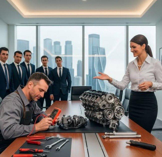 CEO wyśmiał skromnego mechanika: „Napraw ten silnik, a przymusę cię”… udało mi się mu się.