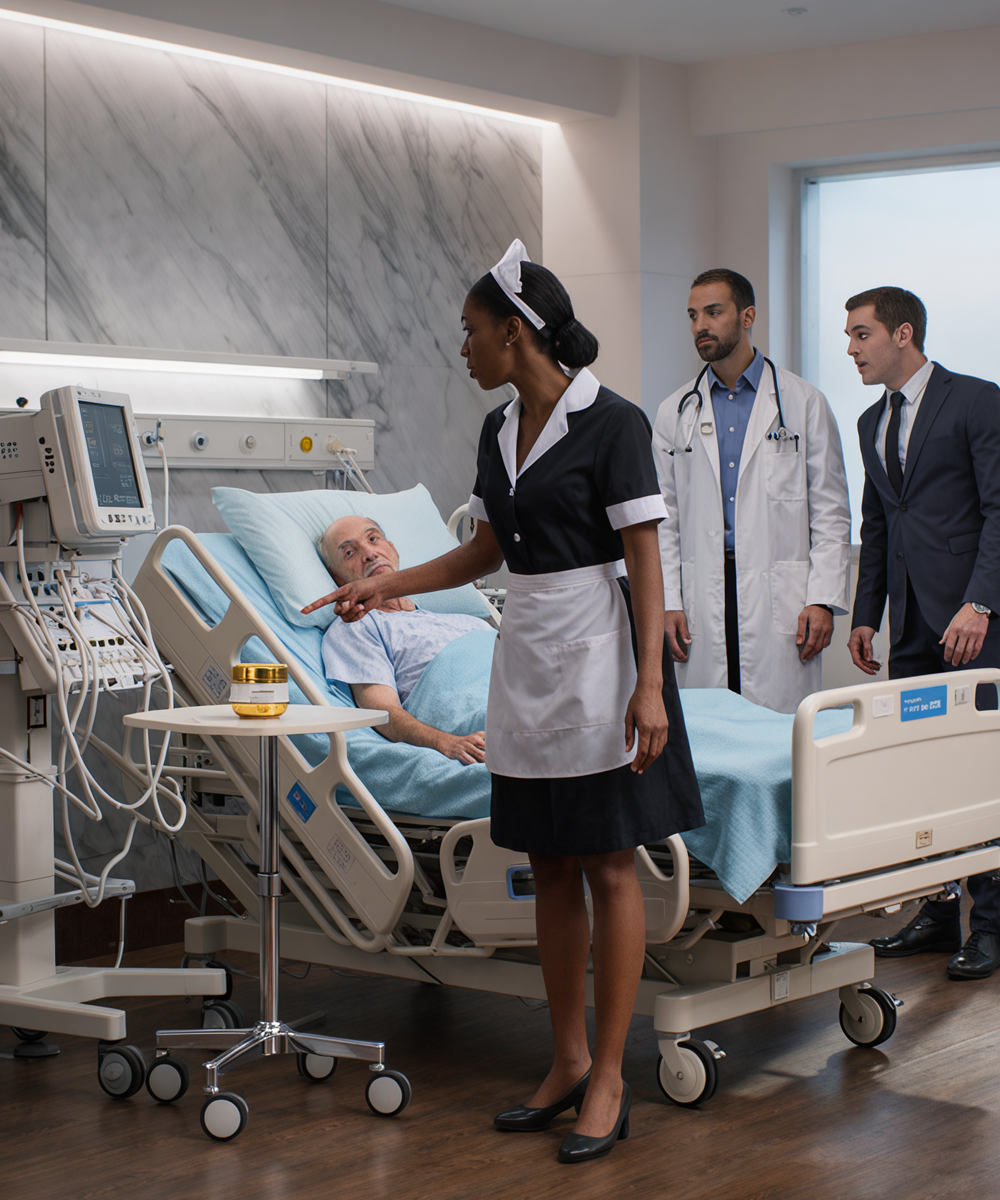 Ścisnęło ją w piersi. Kto by uwierzył, że sprzątaczka ma ponad dwudziestu lekarzy? Mimo to nie mogła milczeć. Zrobiła krok naprzód. „Przepraszam… Myślę, że to może być tal. Metal ciężki. Objawy pasują – paznokcie, wypadanie włosów, osłabienie…”