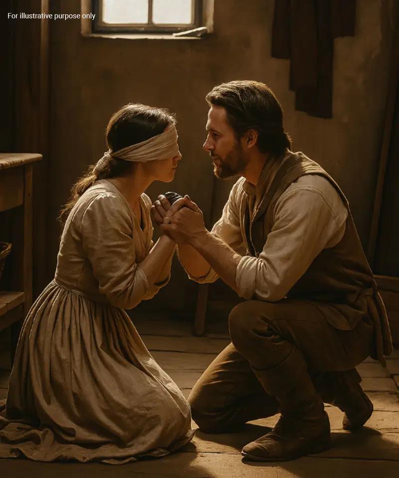 Usiadła na starej macie w środku, powstrzymując łzy. To było teraz jego życie. Niewidoma dziewczyna wyszła za mąż za żebraka w chacie z gliny i nadziei.