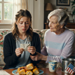 W pomieszczeniu panowało napięcie i niedowierzanie. Dolores, wciąż trzymając niepewnie ciasto nad koszem na śmieci, zawahała się. Na jej twarzy malowało się lekkie zdziwienie, jakby nie mogła pojąć obrotu spraw. Pozostali rodzice wymienili niespokojne spojrzenia, niepewni, czy gest Rosalie złagodzi sytuację, czy ją jeszcze bardziej zaogni. Ale Rosalie, drobna i o wielkim sercu, stała niewzruszenie, a jej oczy spotkały się z oczami Dolores z dojrzałością wykraczającą poza jej siedem lat.