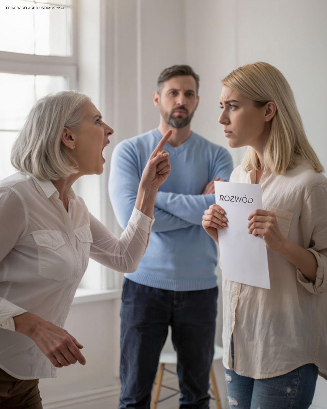 Zanim zdążył się odezwać, jego matka, pani Ellis, wybiegła z kuchni, a jej głos podniósł się jak burza: „Rozwód? Nie bądź śmieszny! Myślisz, że możesz tak po prostu wyjść z tego domu?”