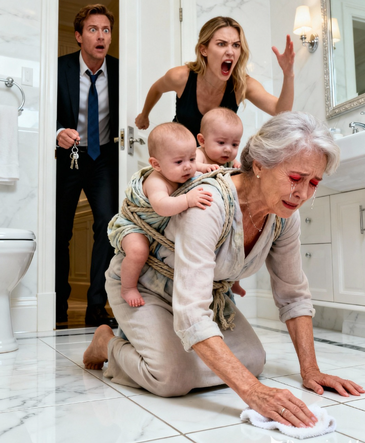 Nie na macie. Nie na poduszce. Prosto na zimną, wypolerowaną marmurową podłogę. Jej plecy były wygięte, ramiona drżały, dłonie były czerwone i podrażnione, gdy szorowała kąt za toaletą gąbką, która pachniała jak coś, co parzy w nos od samego oddychania.