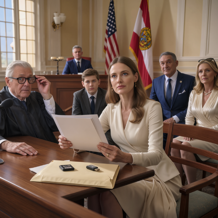 Mój ojciec oświadczył, że wille w Miami należą do nich, a ja nie jestem wart ani centa. Macocha uśmiechała się, jakby była na czerwonym dywanie, ale sędzia po prostu zamarł. Wpatrywał się w złożony przeze mnie dokument, a w pomieszczeniu zapadła cisza. To nie jest zwykła walka o majątek. To gumka. Sfałszowali podpis, żeby wymazać mnie z istnienia. Ale posiadam to, co ich zniszczy – głos mojej babci nagrany w tajemnicy.