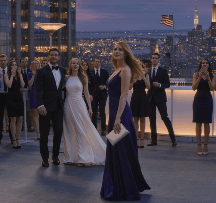 That night, on a windy rooftop lined with steel railings and champagne worth more than my first paycheck, my husband pointed to another woman and called her his new wife. Everyone stared, waiting for me to break. I simply smiled, my hand wrapped around the clutch that held the old prenuptial agreement he once insisted I sign.