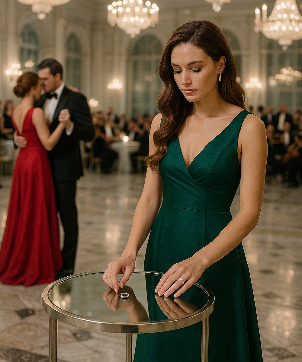 Stałam na skraju parkietu w szmaragdowej jedwabnej sukni, która nagle wydała mi się ciężka. Najtrudniejsza prawda dotarła do mnie: nie byłam częścią tego przedstawienia.