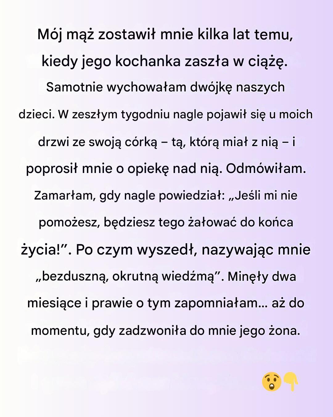 Ik ben 34 en mijn ex-man van 36 heeft me Jaren Geleden en de steek gelaten toen zijn minnares zwanger raakte. Sindsdien voed ik onze twee kinderen alleen op. Następny tydzień spędziliśmy na planowaniu swojego życia za pomocą dochter – de dochter die hij bij haar had – en vroeg me om op te passen.