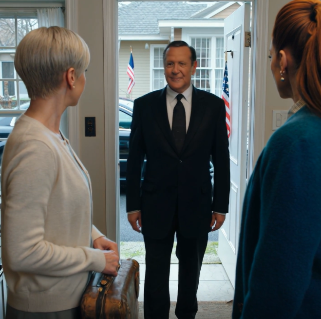 Emily weszła za nim – czerwone paznokcie, gładkie włosy, ciemnoczerwona szminka. Skrzyżowała ramiona i oparła się o framugę drzwi, jakby czekała na rozpoczęcie przedstawienia.