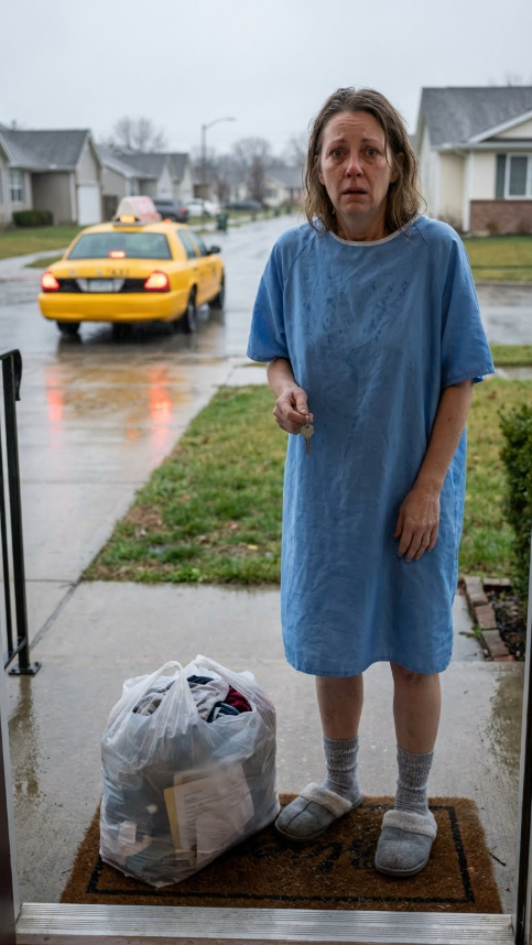 Kierowca taksówki zawahał się, zanim odjechał od krawężnika. Spojrzał w lusterko wsteczne na starszą kobietę stojącą na chodniku, ciężko opartą na lasce, z małą, zniszczoną torbą szpitalną u stóp. Jesienny wiatr wzmagał się, unosząc martwe liście wokół jej kostek.