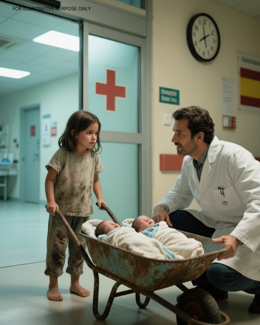 Kiedy rano automatyczne drzwi się otworzyły, pielęgniarka z oddziału ratunkowego zamarła. Dziewczynka – nie starsza niż siedmioletnia – pchała zardzewiałą taczkę przez drzwi. W środku, owinięte cienkim kocem, leżało dwoje noworodków , z bladymi, ale oddychającymi twarzami.