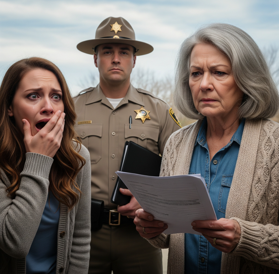 Moja synowa przyjechała o świcie, żeby wyrzucić mnie z chaty, którą uważała za swoją — ale kiedy szeryf przekroczył próg mojego domu kilka minut później, jej twarz się załamała, gdy wręczał jej dokumenty dowodzące, że po cichu przepisałam całą nieruchomość na swoje nazwisko kilka godzin wcześniej.