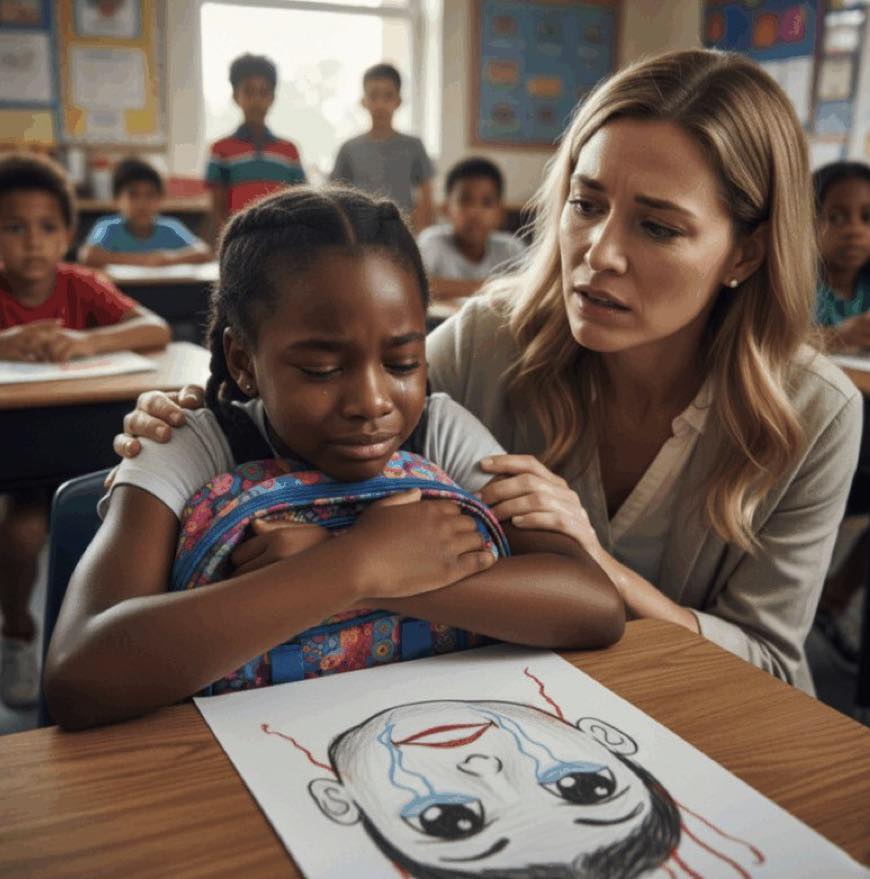 Potem narysowało zdjęcie. Nadal nie istnieje rysunek, ale Pani Harrington opisała mi go później: prymitywne, dziecinne linie, które są przekazywane przez połączenie z patykiem, z czymś, co jest możliwe jako starsza postać męska, która jest za nią. Nauczyciel nie wahał się. Zadzwoniła na 911.