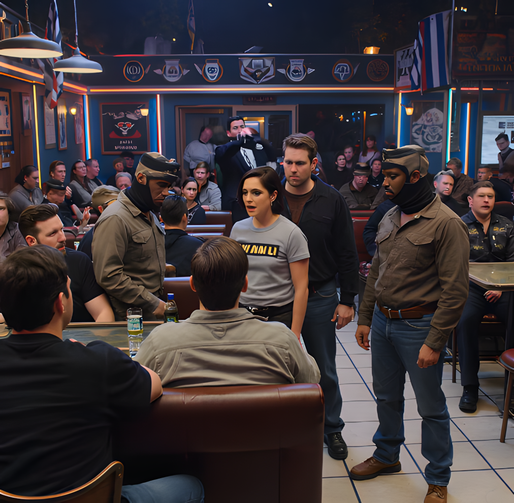 Napięcie w barze wzrosło o kolejny stopień. Marcus, bramkarz, przesunął dłoń bliżej kija baseballowego stojącego za wejściem. Elena lekko podniosła się z krzesła, ale Jessica pozostała nieruchoma – jedynie lekkie przesunięcie stóp pod stołkiem barowym sugerowało, że w ogóle zwracała na niego uwagę.