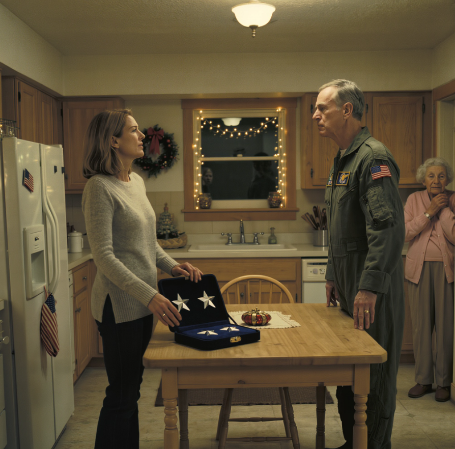 Pułkownik Mark Hensley stał w jej salonie, jakby był jego właścicielem, z wyprostowanymi ramionami i podbródkiem na wysokości brody, mierząc mnie wzrokiem, który od dziesięcioleci oceniał podwładnych.