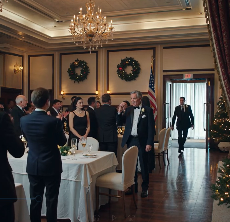 „Mam szczęście mieć wspaniałą żonę, odnoszącego sukcesy syna i piękną synową, która dała nam dwoje idealnych wnucząt. Nasza rodzina nie jest idealna, ale zbudowaliśmy coś, z czego jestem dumny. A dziś wieczorem chcę ogłosić coś naprawdę wyjątkowego – prezent, który reprezentuje wszystko, co reprezentuje nasza rodzina. Danielu, Christine, proszę, podejdźcie tutaj”.