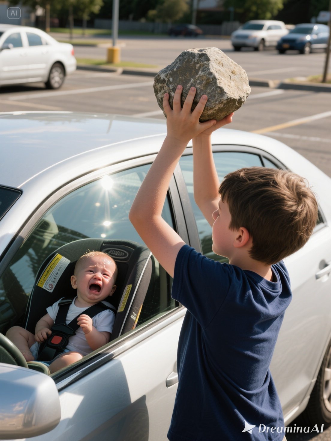 Drżącymi rękami Liam podniósł ciężki kamień z krawężnika. Uniósł go wysoko, szepcząc: „Przepraszam, panie Car”, i trzasnął nim o szybę. Szyba pękła, przypominając pajęczynę, aż w końcu się roztrzaskała.