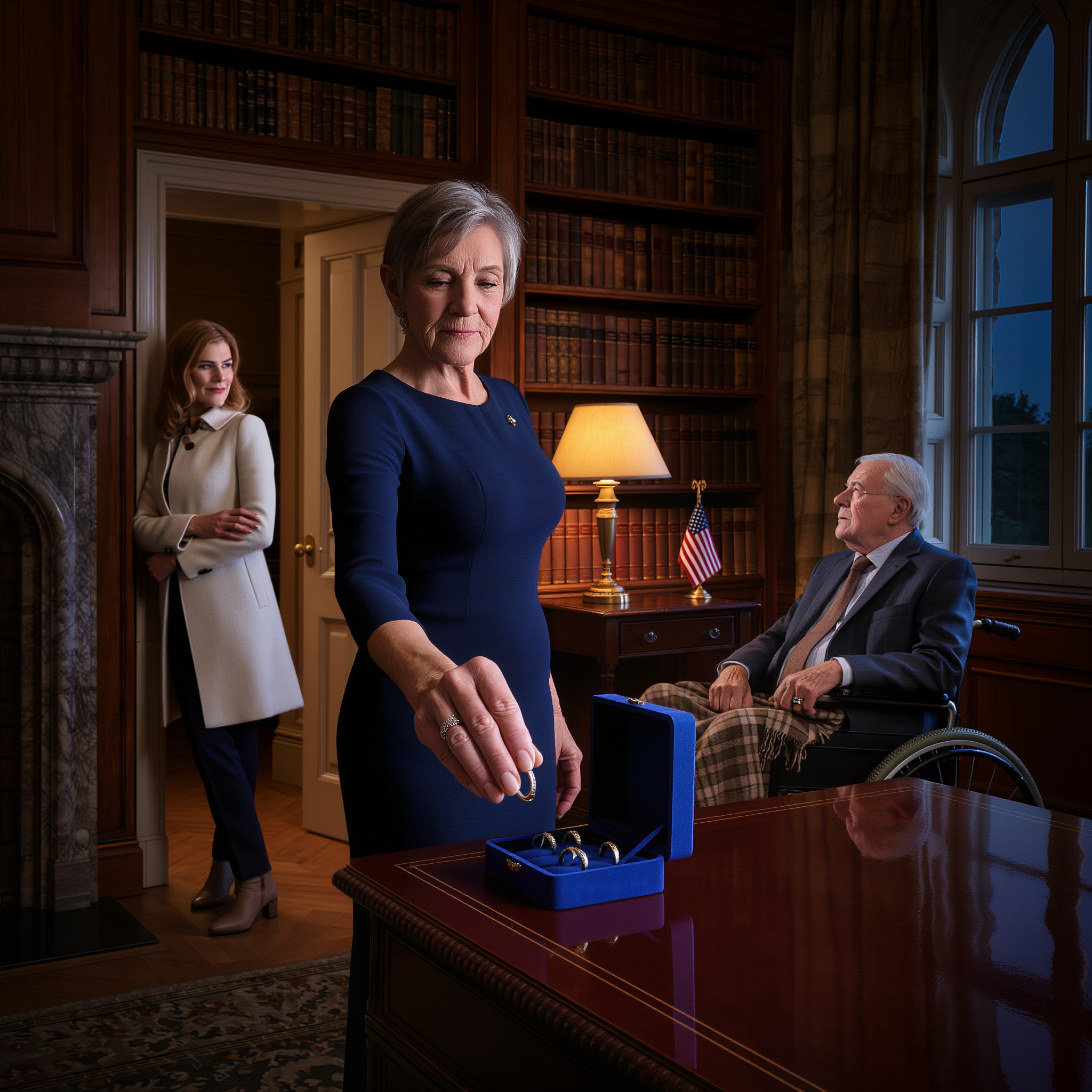 Patricia otworzyła drzwi, ukazując ogromną bibliotekę z oknami sięgającymi od podłogi do sufitu, wychodzącymi na idealnie utrzymane ogrody. A tam, na wózku inwalidzkim przy oknie, siedział mężczyzna o srebrnych włosach i tak wyrazistych rysach, które musiały być dla niego druzgocące, gdy był młodszy.