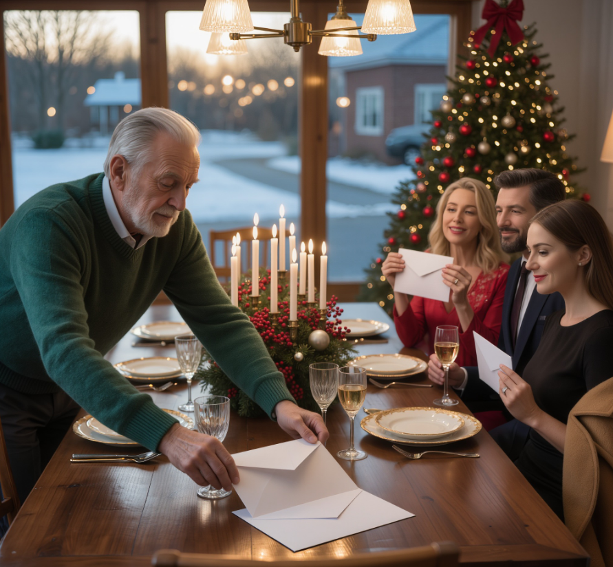 Podczas kolacji wigilijnej dziadek Walter przesunął trzy białe koperty po wypolerowanym stole w jadalni.