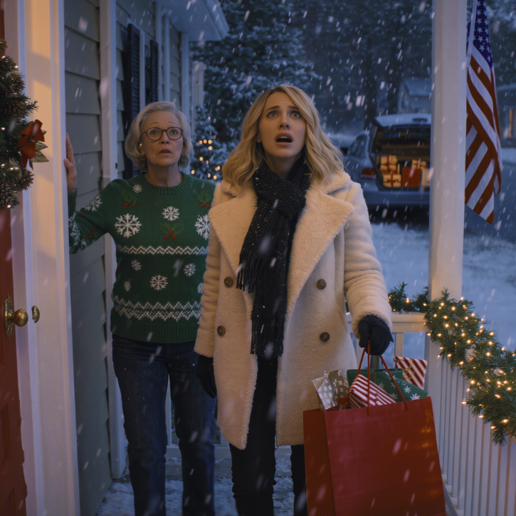 À l’intérieur, j’entendais des murmures et des chants de Noël, les notes familières de « White Christmas » flottant à travers les fenêtres. Je pris une profonde inspiration pour me calmer avant de frapper trois fois le bois de mes poings. Les voix à l’intérieur se turent un instant, suivies du bruit de pas qui s’approchaient. La porte s’ouvrit brusquement, révélant ma mère vêtue d’un pull rouge festif que je ne lui avais jamais vu, un verre de vin à la main. Pendant une fraction de seconde, son visage exprima la surprise avant de se figer dans une expression froide et indéchiffrable.