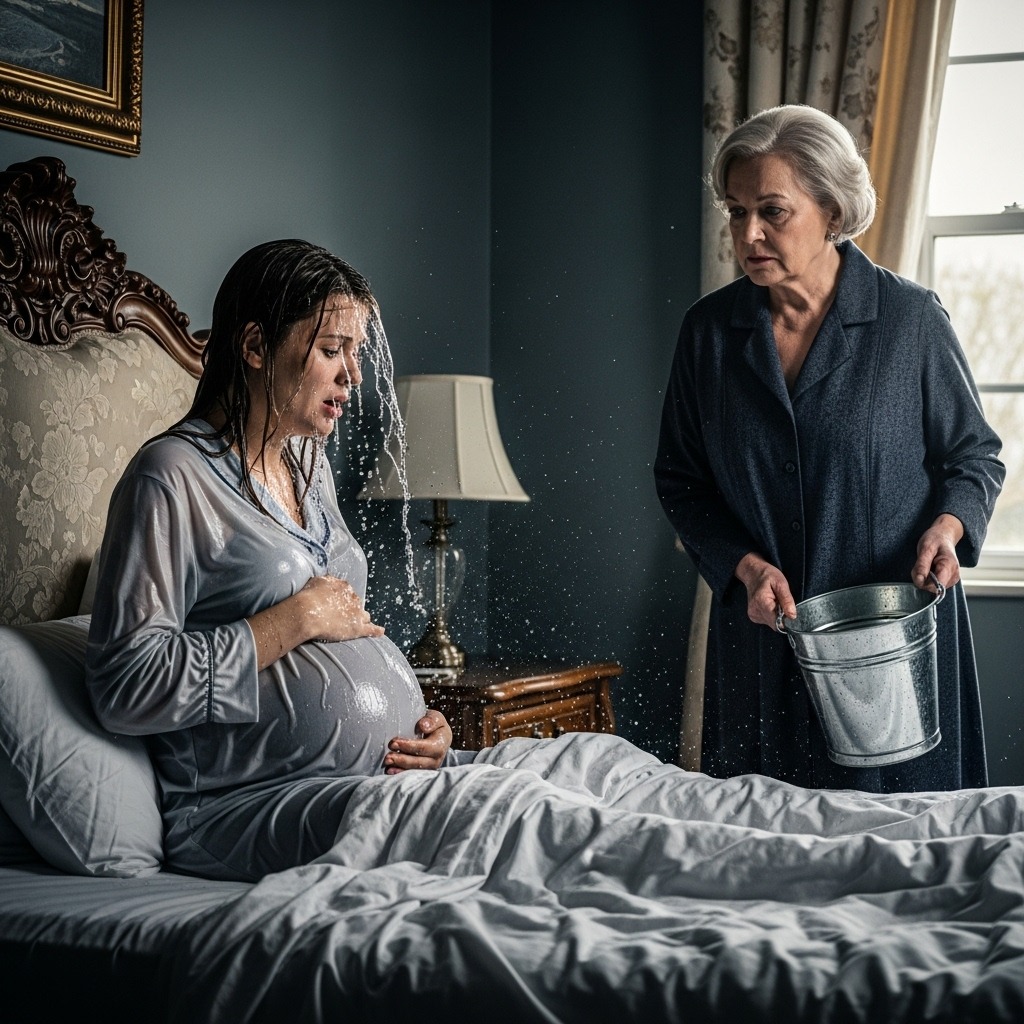 „Boże, co ty robisz?” krzyknęła Emma Carter, gdy lodowata woda zalała jej twarz i ciało, przesiąkając przez koszulę nocną i wnikając w prześcieradło pod nią. Usiadła zszokowana, drżąc gwałtownie.