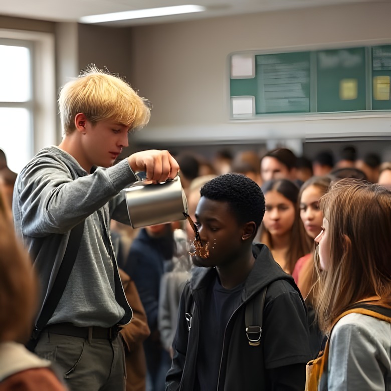 „No, no, patrzcie, kto tu jest – ten nowy” – zadrwił Tyler Brooks, znany z tego, że dręczył każdego, kto nie przedstawił jego wyobrażenia o byciu „fajnym”. W dwóch praktycznych Tyler został przeniesiony w stronę Marcusa z parującą filiżanką dłoni.