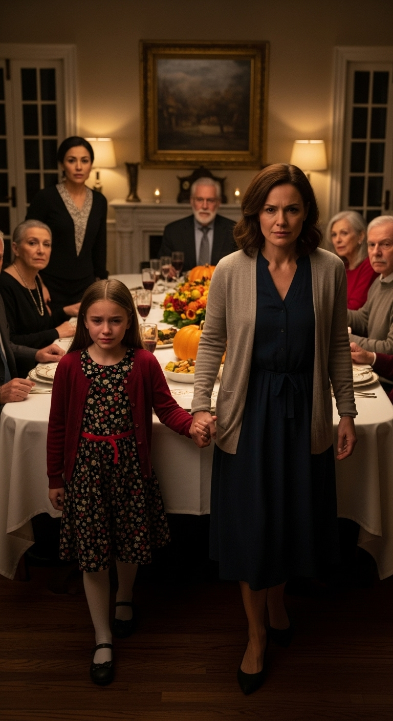 Mój ojciec patrzył na moją dwunastoletnią córkę, jakby była tylko meblem na jego drodze. Nie wnuczką, nie rodziną – tylko przeszkodą stojącą między nim a perfekcyjnie zaaranżowaną kolacją z okazji Święta Dziękczynienia. Żyrandol w jadalni rzucał długie cienie na jego twarz, gdy uniósł rękę i wskazał na kuchnię, a jego ciężka złota obrączka ślubna odbijała światło.