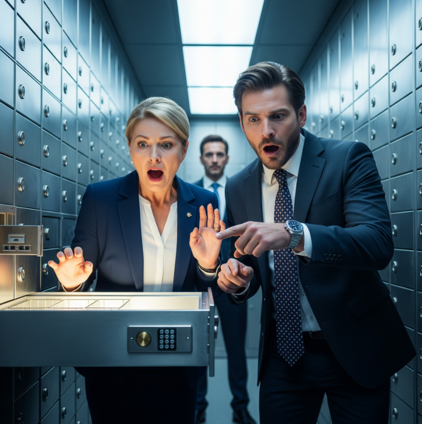 Wsunęła klucz do skrytki 314 i wyciągnęła szufladę. Obserwowałem jej twarz – przez ułamek sekundy zadowoloną z siebie – aż klapa się otworzyła i jej wyraz twarzy zamarł. Jej prawnik pochylił się, spodziewając się stosów gotówki lub dokumentów potwierdzających konta w rajach podatkowych. Zamiast tego, jego twarz zbladła.