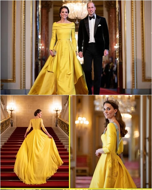 Pałac Buckingham prezentuje się najpiękniej, ale to księżniczka Katarzyna, księżna Walii, przykuła uwagę wszystkich, gdy tylko weszła do historycznej sali balowej. W olśniewającej żółtej sukni, połyskującej pod żyrandolami i ozdobionej parą najsłynniejszych diamentowych kolczyków zmarłej królowej, Katarzyna po raz kolejny udowodniła, dlaczego jest uważana za niekwestionowaną gwiazdę mody monarchii.Suknia, która mówiła sama za siebie