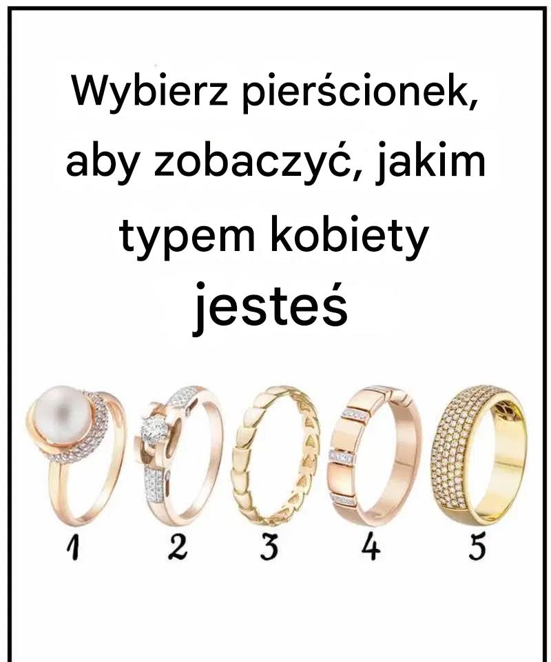 Spójrz na pięć pierścionków na powyższym obrazku i wybierz ten, który od razu do Ciebie przemawia. Nie zastanawiaj się długo; po prostu wybierz pierścionek, który najbardziej Ci odpowiada. Po dokonaniu wyboru przeczytaj poniższy opis, aby dowiedzieć się, co Twój wybór mówi o Twoim typie kobiety.