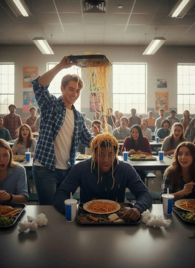 Hałas w stołówce był niemal ogłuszający – brzęk tacek, śmiech rozbrzmiewający po sali, skrzypienie trampek na linoleum. To była po prostu kolejna przerwa obiadowa w Jefferson High… dopóki nie wszedł nowy uczeń.
