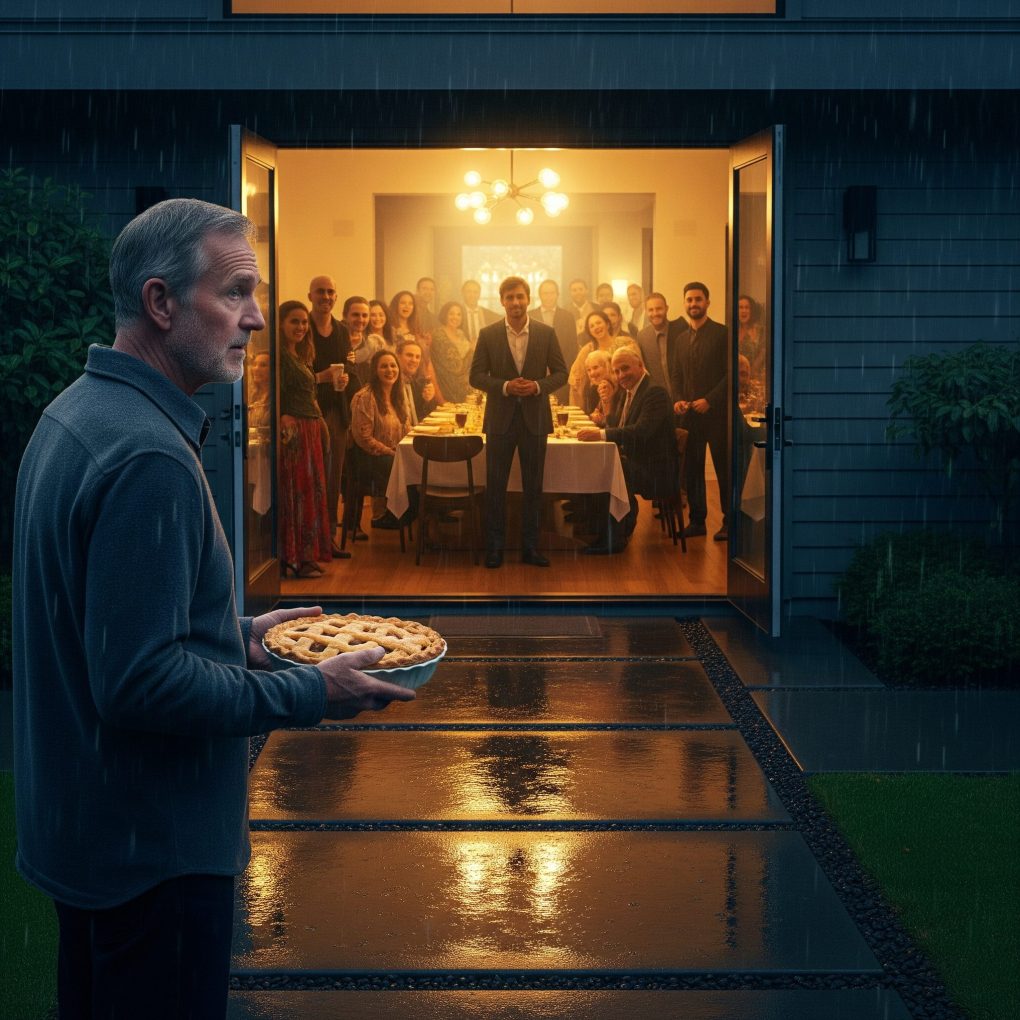 Pod ścianą stało puste krzesło – oczywiste jak wyrok – a mój zięć z uśmiechem blokował drzwi. „Stół zajęty, Graham. Trzydzieści miejsc. Nie ma miejsca dla ciebie”. Powiedział to jak pogoda. Postawiłem ciepłą szarlotkę na stole w przedpokoju, żeby nie spadła, odwróciłem się i wyszedłem z powrotem na listopadowy chłód.